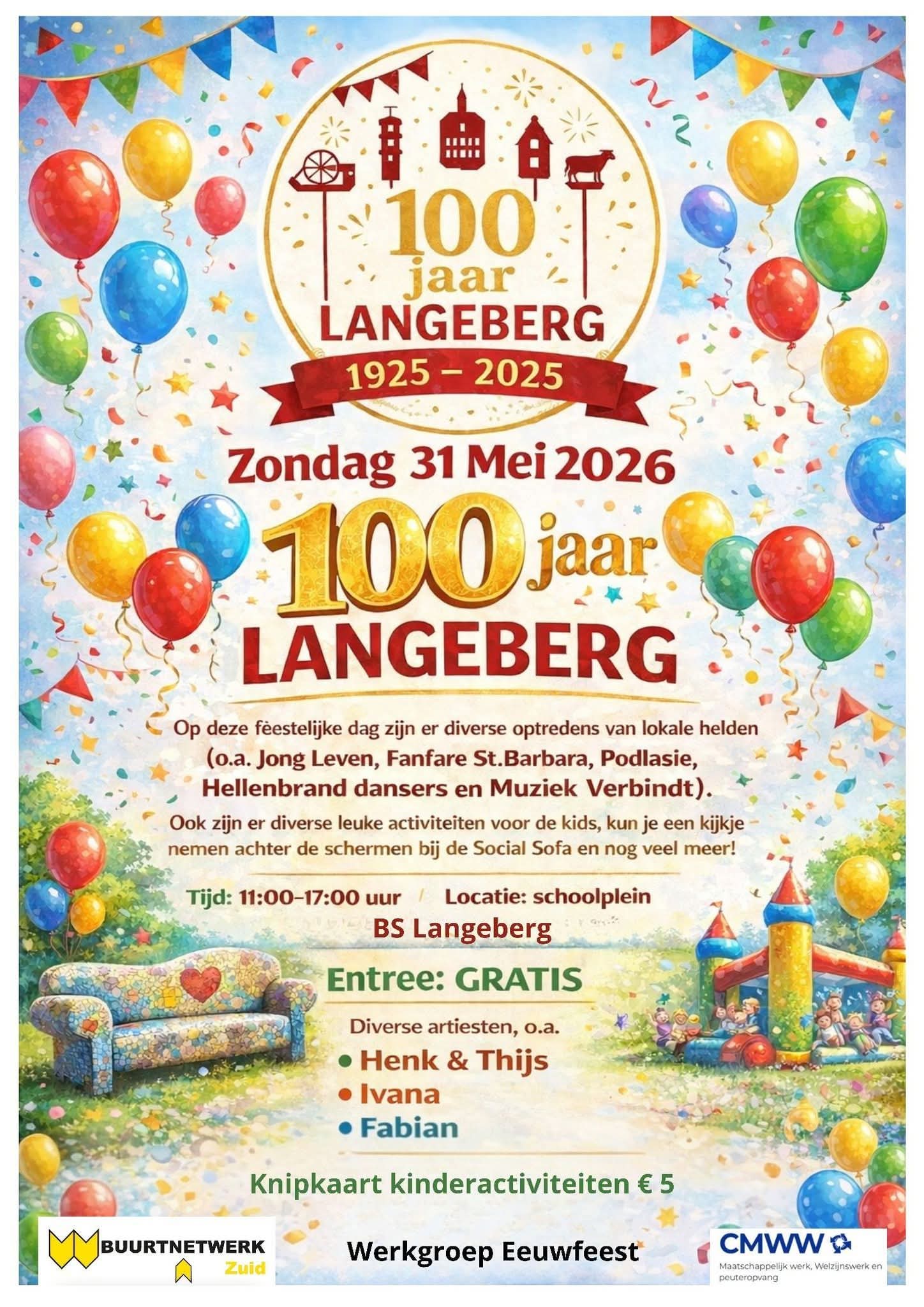 Viering in verband met het 100-jarig bestaan van de wijk Zuid, bestaande uit de buurten Langeberg, Vondelstraat en de Struiken, in de volksmond samengevat als ‘De Langeberg’.