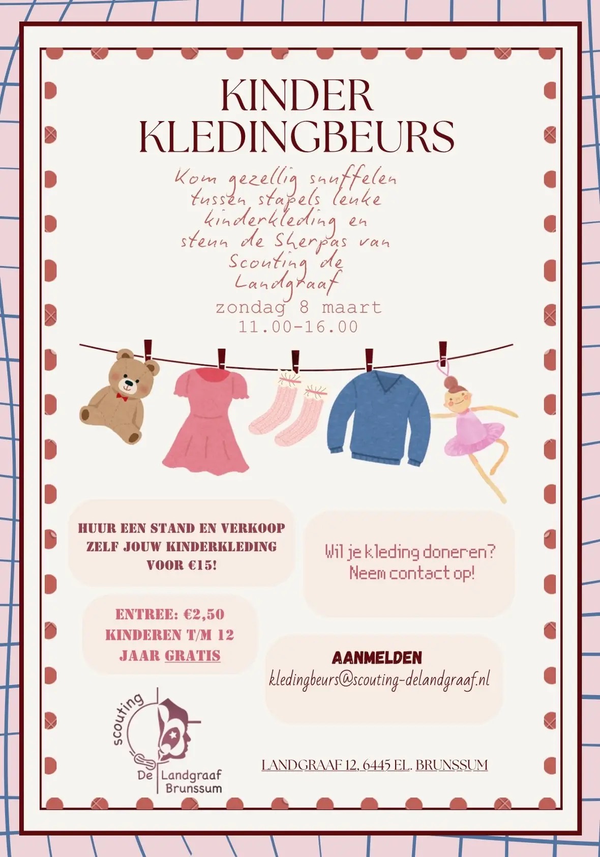 Ook de zolder vol met kinderkleding die niet meer past? Kom het verkopen op onze tweedehands kinderkledingbeurs!