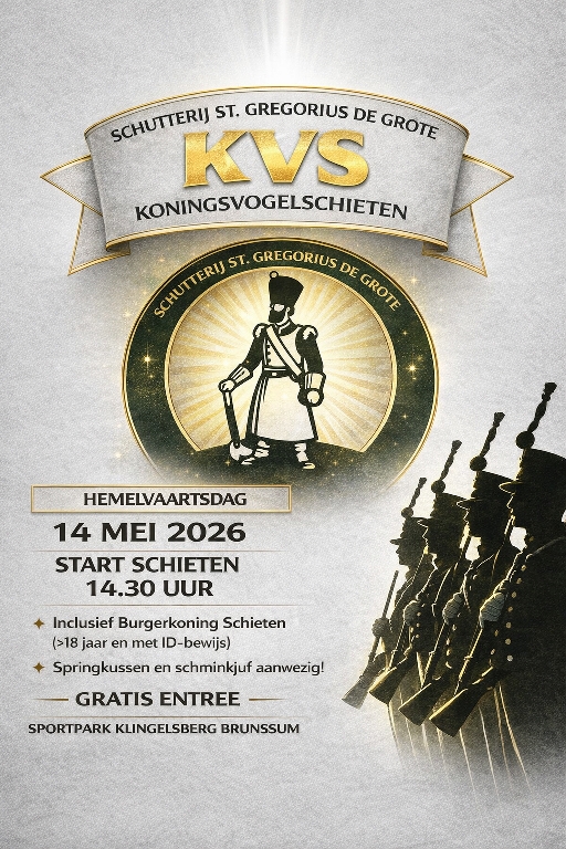 Wij organiseren op Hemelvaartsdag 14 mei weer ons jaarlijkse koningsvogelschieten. Zie in de bijlage onze flyer voor meer info.